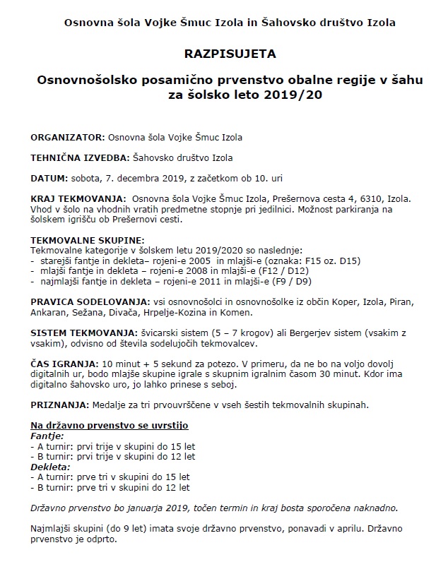 • Šahovski klub Val - Koper • Club scacchistico Val - Capodistria